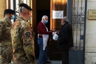I militari della Brigata “Aosta” distribuiscono pasti assieme ai volontari della mensa Sant'Antonio di Messina