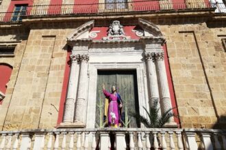 Un'immagine che resterà nella storia: Gesù Nazareno, solo e senza la sua barca infiorata, guarda Caltanissetta