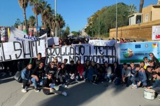 Un migliaio di studenti delle scuole superiori di Gela, con striscioni, fischietti…