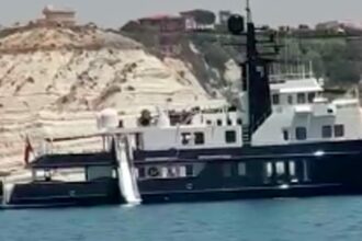 Yacht di lusso fa tappa alla Scala dei Turchi: super imbarcazione con scivolo gonfiabile