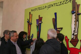 Inaugurato nell'atrio della biblioteca Scarabelli il muro della gentilezza, una parete in…