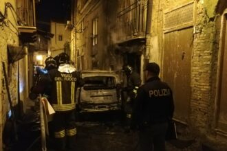 Caltanissetta, auto in fiamme in centro storico: intervengono vigili del fuoco e polizia