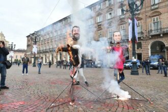 Studenti in piazza bruciano manichini di Di Maio e Salvini: “Una scuola sicura è antirazzista e antifascista”