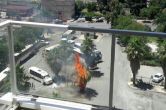 Caltanissetta, palma a fuoco: panico al posteggio dei pullman di via Rochester