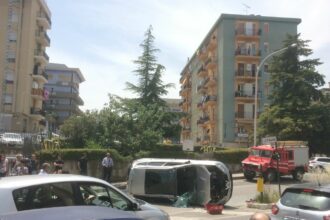 Spettacolare incidente questa mattina all'altezza della rotatoria di via Turati. Una Nissan…