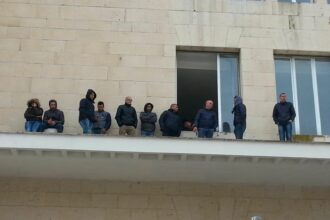 Lavoratori della Tekra senza stipendi protestano sul cornicione del Comune di Gela