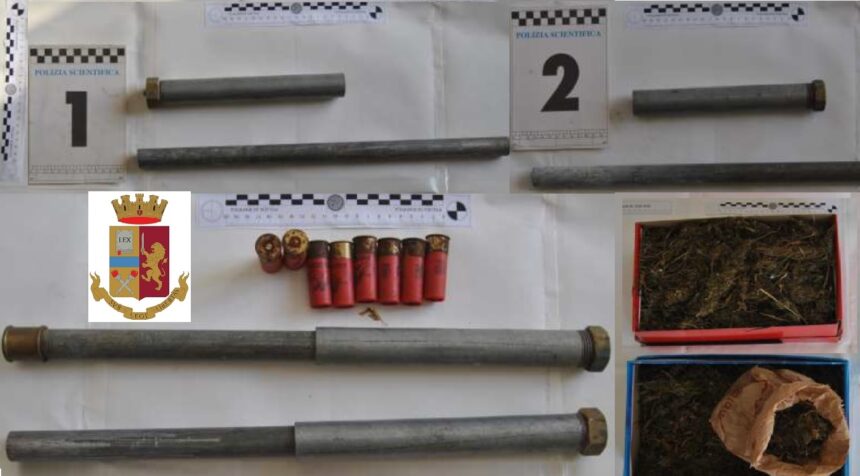 Ieri i poliziotti del Commissariato di Niscemi hanno tratto in arresto Maurizio Sanzone, 48enne niscemese, poiché colto nella flagranza di reato di fabbricazione e detenzione di armi artigianali clandestine, detenzione abusiva di munizioni e detenzione ai fini di spaccio di kg.1,550 di marijuana. Nel corso di un’operazione di polizia giudiziaria, gli agenti della Squadra di P.G. del Commissariato, hanno eseguito una perquisizione domiciliare a casa del Sanzone, avendo fondato motivo di ritenere che lo stesso potesse occultare armi. I sospetti dei poliziotti si sono rilevati fondati, infatti, in una credenza all’interno della casa sono state rinvenute due scatole contenenti complessivamente kg. 1,550 di sostanza stupefacente del tipo marijuana e in un fabbricato adibito a stalla, di pertinenza dell’abitazione, occultate tra le balle di fieno, gli agenti hanno rinvenuto due armi da fuoco clandestine di fattura artigianale, realizzate con dei tubi idraulici modificati e otto cartucce calibro 12 Fiocchi. Il Sanzone ha riferito ai poliziotti di aver fabbricato le armi, perfettamente funzionanti, per difendersi contro eventuali intrusi. L’arrestato, dopo le formalità di rito, su disposizione del P.M. presso la Procura della Repubblica di Gela è stato condotto in carcere a Gela a disposizione dell’A.G.