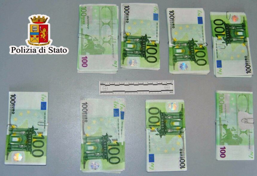 Ieri i poliziotti del Commissariato di Pubblica Sicurezza di Niscemi hanno denunciato alla Procura della Repubblica di Gela, un 26enne niscemese, gravato da pregiudizi di polizia, per il reato di spendita e introduzione nello Stato di monete falsificate. L’uomo, nella tarda mattinata, è stato sottoposto a controllo da parte degli agenti della squadra di polizia giudiziaria, mentre si trovava all’interno di un esercizio commerciale ubicato in Via Pirandello a Niscemi. Il 26enne alla vista dei poliziotti mostrava subito segni di agitazione cercando di defilarsi. A seguito della perquisizione personale, alla quale lo stesso è stato sottoposto, gli agenti hanno sequestrato 94 banconote da 100 euro, per un totale di 9.400 euro, divisi in gruppi, riportanti tutti gli stessi numeri di matricola. Riguardo al possesso delle monete l’uomo ha riferito ai poliziotti di averle acquistate, per la somma di 600 euro, sul treno che dal nord l’ha condotto in Sicilia.