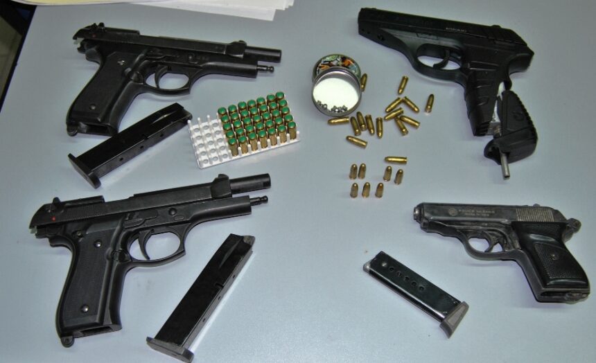 Ieri pomeriggio, gli agenti si sono presentati nell’azienda gestita dai due niscemesi, che, si sospettava, potessero detenere illecitamente delle armi. I poliziotti di Vittoria e Niscemi hanno eseguito una perquisizione nei locali dell’azienda, in contrada Dirillo – Monello.In una camera da letto della casa rurale, è stata trovata, dentro l’armadio, avvolta in una coperta, una pistola giocattolo, modificata in modo da realizzare una pistola semiautomatica, cal. 6,35, con caricatore inserito, a pieno carico di cartucce. Nello stesso posto è stato trovato un contenitore di colore blu in plastica con all’interno altri proiettili calibro 6,35. La pistola giocattolo modificata diventata un’arma micidiale, in grado di esplodere colpi pericolosi. Inoltre, sono state trovate altre pistole a gas ed a salve, tutte prive di tappo rosso, anche queste chiaramente alterate. Platania e Ficicchia sono stati condotti nel carcere di Ragusa.