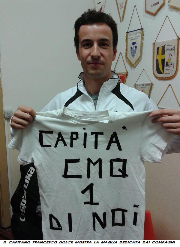 La vittoria è stata dedicata al capitano Dolce (nella foto), infortunatosi gravemente: rottura del crociato per lui due settimane addietro nell’incontro con l’Azzurri Futsal.