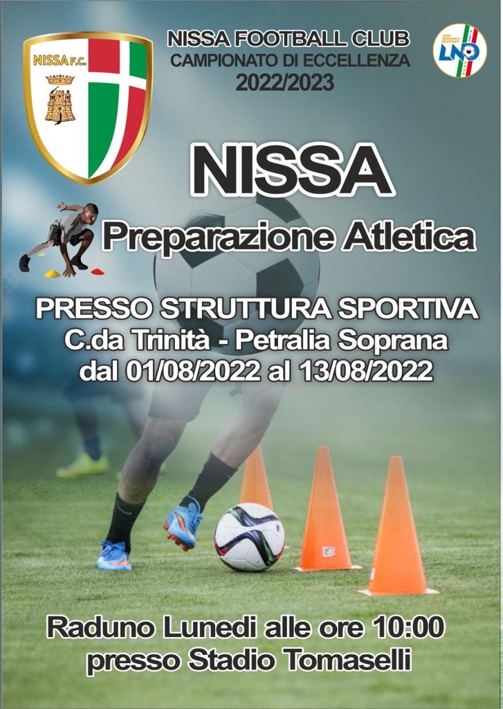 Lunedì, si comincia a sudare per la maglia biancoscudata. Il raduno è fissato per l'1 agosto, alle ore 10, presso lo stadio "Marco Tomaselli". È tutto pronto, infatti, per la prima parte del ritiro pre campionato della NISSA F.C. che si svolgerà dall'1 al 13 agosto a Petralia Soprana, in provincia di Palermo. Il campo di allenamento della squadra allenata da mister Alessandro Settineri sarà il "Trinità". Una struttura sportiva altamente qualificata. Nel corso della preparazione, la formazione biancoscudata, giocherà tre gare amichevoli con avversari ancora da stabilire. La prima si svolgerà il 7 agosto di mattina, le altre due il 10 e il 13 agosto di pomeriggio