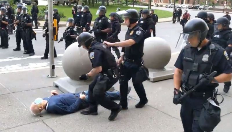 L'America si scopre così nuovamente indignata per una violenza cieca e senza giustificazioni, anche se stavolta la vittima non è afroamericana ma di razza bianca. È uno dei tanti manifestanti che stavano protestando per le strade di Buffalo, nello stato di New York, solo un po' più anziano degli altri, 75 anni si scoprirà poi. Alto, capelli bianchi e corti, un jeans e una felpa come tanti giovani attorno, avanza verso una colonna di poliziotti. È da poco scattato il coprifuoco. Sul viso l'uomo indossa una mascherina antivirus, in una mano tiene un casco, nell'altra il telefonino. Un video lo riprende mentre si avvicina a due agenti: sembra voler dire loro qualcosa, ma all'improvviso viene brutalmente strattonato, spinto. Cade in terra battendo violentemente la testa, il sangue si sparge sul marciapiede, ma i poliziotti tirano dritto. Dopo un po' di confusione e le proteste dei testimoni qualcuno chiama i soccorsi. Sarà il sindaco di Buffalo, Byron Brown, più tardi a dire che l'uomo è in condizioni stabili ma gravi. Intanto le immagini avevano già fatto il giro del web. Il governatore dello stato di New York, Andrew Cuomo, è fuori di sé e parla senza mezzi termini di «abuso di potere» da parte dei poliziotti coinvolti: «La polizia deve difendere la gente e deve difendere sé stessa, ma gli abusi devono finire, si deve cambiare! Quando è troppo è troppo». Gli agenti che hanno colpito l'anziano ora sono stati sospesi in attesa di vedere se ci sono gli estremi per una loro incriminazione. L'episodio di Buffalo è solo uno dei tanti che in questi giorni di proteste antirazziste in tutti gli Stati Uniti tirano in ballo la polizia violenta, come quella che a Minneapolis ha provocato la morte di George Floyd. «Tutti i poliziotti che saranno scoperti a maltrattare i manifestanti verranno sospesi», giura il sindaco di New York Bill de Blasio, che dopo i disordini e i saccheggi dei giorni scorsi teme che per far rispettare il coprifuoco molti nelle forze dell'ordine si lascino prendere la mano. Nella serata di giovedì a New York ci sono stati circa 300 arresti, pur in assenza d'incidenti. Intanto a Washington ormai da più di una settimana i manifestanti continuano ad assediare la Casa Bianca. Per questo Donald Trump ha fatto alzare davanti all'edificio presidenziale un vero e proprio muro fatto di barriere e recinzioni altissime, con lo scopo di tenere a bada le proteste. Ma la mossa rischia di diventare un boomerang per il tycoon, trasmettendo un'immagine di debolezza del presidente che nei giorni scorsi è stato costretto a schierare anche i soldati. Il muro dovrebbe restare in piedi almeno fino al 10 giugno, visto che nei prossimi giorni si aspettano altri momenti di grande tensione, soprattutto nel fine settimana. Intanto, oltre alle polemiche, si scatena l'ironia sui social: «Vuole costruire un muro, quello con il Messico, per proteggere gli americani, e ora costruisce un muro davanti alla Casa Bianca per proteggersi dagli americani», è uno dei commenti. «Il sogno di Trump di costruire un muro diventa realtà», ironizzano altri. Fa scalpore intanto un altro tweet del presidente, che ha postato la lettera di uno dei suoi legali in cui i manifestanti attorno alla Casa Bianca vengono definiti «terroristi». Mentre Twitter, evidenzia Giovanni D'Agata, presidente dello Sportello dei Diritti”, sfida di nuovo il tycoon disattivando un video della sua campagna elettorale sulla morte di George Floyd, giustificando la decisione con una questione di copyright.
