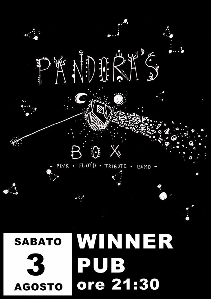 I più bei pezzi dei Pink Floyd rivivranno al Winner Pub di via Salvo D'Acquisto di Caltanissetta, dove stasera la tribute band dello storico “Pandoras' Box” Â si esibirà proponendo dal classico The wall fino a The dark side of the moon, senza dimenticare l'intramontabile Wish you were here e altri brani del repertorio della gloriosa band inglese. I Pandora's Box sono Simone Faraci, tastiere e voci, Michele Cigna, chitarra elettrica e voci, Valerio Immordino, basso elettrico e voci, Pierluigi Miraglia alla batteria.