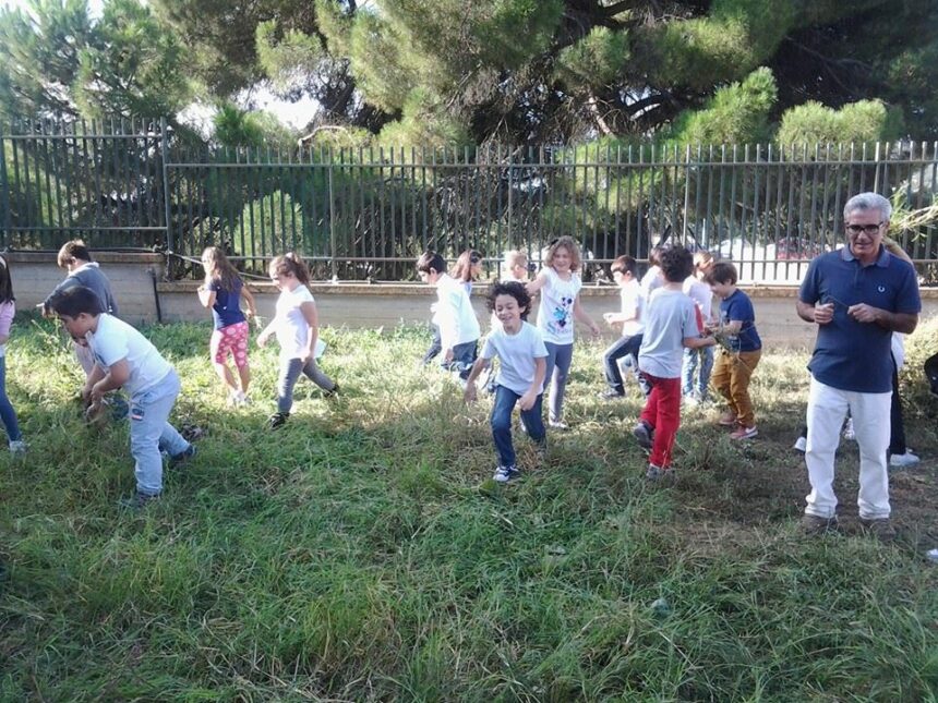 Nella foto: i bambini del plesso Michele Abbate dell'Istituto Comprensivo M.L.King di via Leone XIII puliscono il loro orto scolastico dalle erbe selvatiche cresciute nell'estate, e preparano il terreno alle nuove semone e piantumazioni