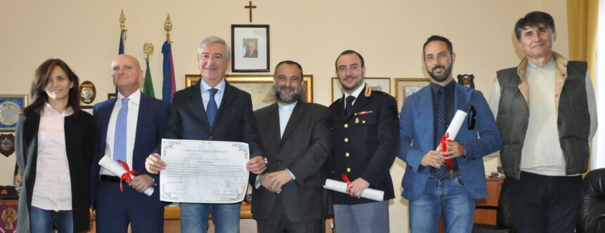 Delle pergamene sono stati, altresì, insigniti il Vicario del Questore dr. Riccardo Caccianini, il Capo di Gabinetto dr. Giuseppe Sofia ed il Dirigente del Commissariato di P.S. di Piazza Armerina dr. Sergio Carrubba .