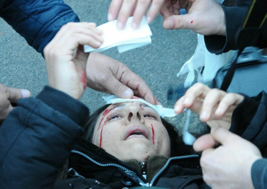 La ragazza, dopo essere stata soccorsa da un medico che stava partecipando al corteo, è stata trasportata in ambulanza in ospedale, dove in serata è stata dimessa. «Quando la testa del corteo ha provato a sfondare il cordone di polizia, sono partite le cariche e qualcuno ha risposto lanciando oggetti – aggiunge -. Mi trovavo vicino ai giornalisti stavo facendo delle riprese con la telecamera, ho avuto la sensazione di essere stata colpita alla testa da una bottiglia piena di ghiaccio, non so, in effetti, cosa è stato se un grande masso o altro. In ogni caso condanno la violenza, perchè alla violenza non si risponde mai con la violenza. Può sembrare un approccio ingenuo, ma penso sia l'unico modo per risvegliare le coscienze». «Ero lì – dice ancora – per condividere un concetto di buon senso, lanciare un messaggio di pace e ribadire che la nostra Costituzione ripudia la guerra e che la salute delle persone va tutelata».