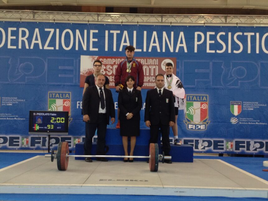 E’ Fabio Pizzolato il campione italiano esordienti 2015 della 77 kg. Il giovane siciliano, fratello di Nino, ha ipotecato il titolo già al termine della prova di strappo, quando, con il risultato di 93 kg ha stabilito il nuovo record italiano di classe e messo tra se il più immediato inseguitore, Nicola Lettini (Hard Work), ben 23 kg. Grande gara per Pizzolato anche nello slancio chiuso con tre prove valide (105/110/114) e altri due record nazionali (slancio e totale). Argento a Nicola Lettini (165 kg) e bronzo a Giosuè Capobianco della Functional Training Puglia (100 kg).