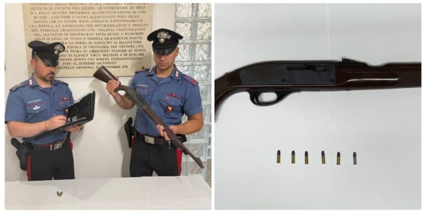 I militari, prontamente raggiunto il luogo segnalato, alla luce delle specifiche circostanze di tempo e di luogo bloccavano il prevenuto per poi sottoporlo a perquisizione personale e veicolare, al termine della quale rinvenivano e ponevano in sequestro una carabina semiautomatica cal. 22 marca “Remington” e relativo munizionamento – di cui una cartuccia giĂ incamerata – occultati al di sotto del sedile anteriore lato conducente della sua autovettura.