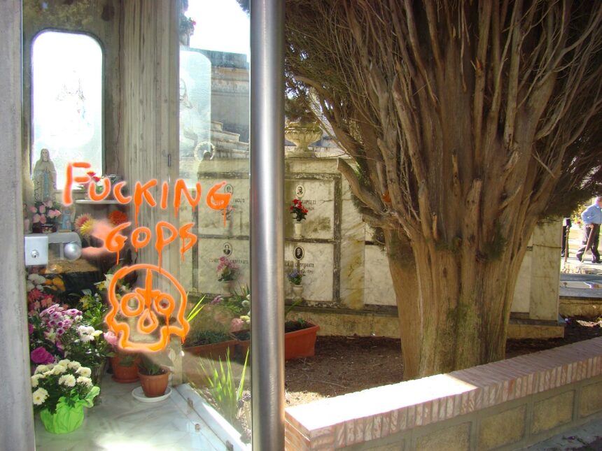 Li hanno presi, ma non sono tutti. Hanno un volto e un nome. Per adesso sono sette, hanno fra i 15 e i 17 anni, ma sono molti di più – almeno una quindicina – quelli che hanno fatto irruzione nel cimitero di San Cataldo, imbrattando tombe e scrivendo bestemmie ovunque. Svolta lampo nelle indagini sul raid avvenuto la notte di Halloween: la Digos di Caltanissetta, infatti, ha individuato sette ragazzini che erano presenti all'interno fra i viali del cimitero. Sono tutti di San Cataldo e di buona famiglia: sono stati segnalati alla Procura dei Minori ma al momento la Polizia non ha formulato nessuna ipotesi di reato nei loro confronti. Gli investigatori della Digos, coordinati dal vice questore aggiunto Fabio Lacagnina, non escludono che anche loro abbiano partecipato al raid sacrilego contro le tombe, deturpandole con vernici spray, oppure mutilando le statuine del Cristo e della Madonna, scrivendo bestemmie o una stella a cinque punte con la scritta Blasfemia. Le indagini della Digos si sono strette su alcuni giovani adolescenti, alcuni dei quali messi sotto torchio in Questura alla presenza dei genitori. Durante gli interrogatori, i sette giovani sancataldesi hanno ammesso di essere entrati al cimitero di viale dei Cipressi intorno alle ore 22 dopo avere scavalcato un muro perimetrale che si trova dietro l'ingresso principale. Dalle prime indagini, come spiegato dagli stessi ragazzi che però si sono tirati fuori dall'atto vandalico pur ammettendo di aver fatto irruzione nel cuore della notte nel luogo sacro, sembra che siano stati almeno 15 quelli che sono entrati nel cimitero, partecipando ad una sorta di party da brivido nella notte delle tenebre, deturpando le tombe.
