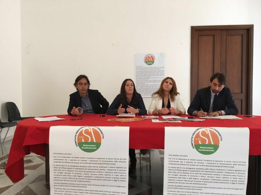 “Finalmente, dopo anni di sterile dibattito, siamo passati dalle parole ai fatti per velocizzare i tempi delle decisioni, garantire il pieno rispetto della rappresentanza politica e l'equilibrio del sistema istituzionale, valorizzare il ruolo e la funzione delle economie locali, ridurre il numero degli addetti e dei costi della politica”, hanno aggiunto i promotori del Sì che nei giorni scorsi sono scesi in piazza per la sottoscrizione delle firme. “Per queste ragioni, invitiamo tutti i cittadini della provincia di Caltanissetta a sostenere il più grande sforzo riformista della Storia repubblicana votando SI al referendum di ottobre 2016”.