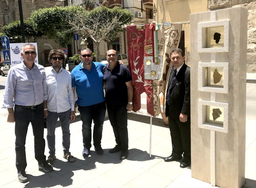 Con la collocazione degli ultimi elementi scultorei all’interno delle tre steli in marmo siciliano lungo il perimetro di Piazza Garibaldi, si è conclusa a Riesi la sistemazione degli arredi artistici a cura degli artisti Leonardo Cumbo e Tina Aldisi. Risultati vincitori al concorso-laboratorio di idee “Riesi fatti avanti, organizzato nel dicembre del 2013 dall’Associazione Agisco e dal Comune di Riesi, con un progetto che convinse sia la giuria tecnica che quella popolare per l’originalità e la capacità di coniugare l’espressione artistica, ricca di contenuti identitari della comunità riesina e della sua storia, con la funzionalità delle loro proposte, i due artisti ricevettero l’incarico dall’Ufficio Tecnico del Comune di eseguire i lavori di realizzazione dei diversi elementi, nel giugno del 2015. Gli arredi artistici dislocati lungo il perimetro della piazza consistono in sei sculture/panchine polimateriche, ideate dall’artista Cumbo, sono ispirate alla cultura contadina, attraverso l’inserimento di elementi tipici come la ruota della macina in pietra, la vite senza fine del torchio in legno per la spremitura dell’uva, le quartare in terracotta. Tali elementi simbolici svolgono anche la funzione di basi che sorreggono un'estremità delle panche in marmo siciliano sulle quali troviamo incisi anche alcuni proverbi siciliani esemplari.
