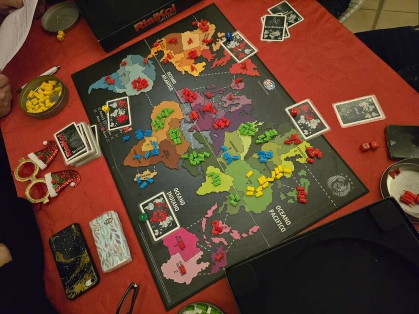 In un’atmosfera natalizia sempre più scintillante, si è giocato ieri sera presso la Locanda del Buon Samaritano di San Cataldo (CL) il secondo turno del Torneo di Natale “Happy Christmas” .. a causa di alcuni giocatori affetti da stati influenzali, o fuori sede per le vacanze natalizie e alcune defezioni dell’ultimo minuto, si è determinata una partecipazione meno numerosa di “risikanti” a questo secondo turno…solo 8 giocatori e due tavoli da gioco che però ..quanto si sono divertiti e che belle partite hanno tirato fuori…In particolare quella al tavolo 1 è stata vinta (o persa a seconda dei punti di vista) per un solo punto, mentre al tavolo 2 i punti di distacco dal vincitore a scendere sono stati un po’ di più ma, fino all’inizio del turno di chiusura della partita gli equilibri in plancia non sono mancati.