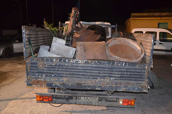 Manuel SantoroI poliziotti desumendo che i malviventi si fossero allontanati a bordo di un mezzo carico con gomme bucate, si recavano presso alcuni gommisti in prossimità della zona per individuare il camion. E in effetti in un gommista i poliziotti individuavano il camion con braccio meccanico, al quale mancava il paraurti anteriore, rinvenuto poco prima, con le gomme bucate e i cerchioni consumati, carico di diversi quintali di materiale ferroso asportato dalla fabbrica. Lì erano presenti anche Polizzi e che ha riferito ai poliziotti di aver fatto rimorchiare il camion fino al gommista poiché aveva bucato le gomme e, poco dopo, s'è avvicinato anche Santoro.