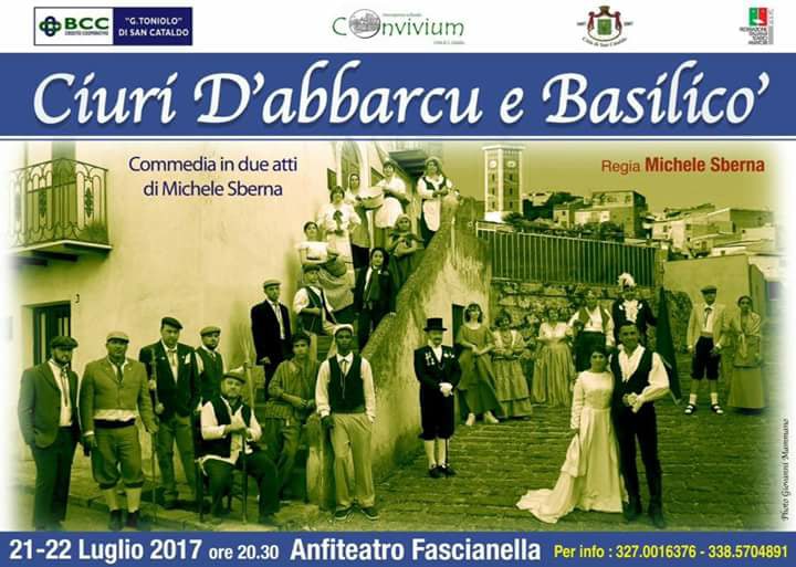 L'associazione Culturale Convivium Citta di San Cataldo presenta la commedia brillante in due atti in dialetto sancataldese di Michele Sberna dal titolo "Ciuri D'abbarcu e Basilicò"