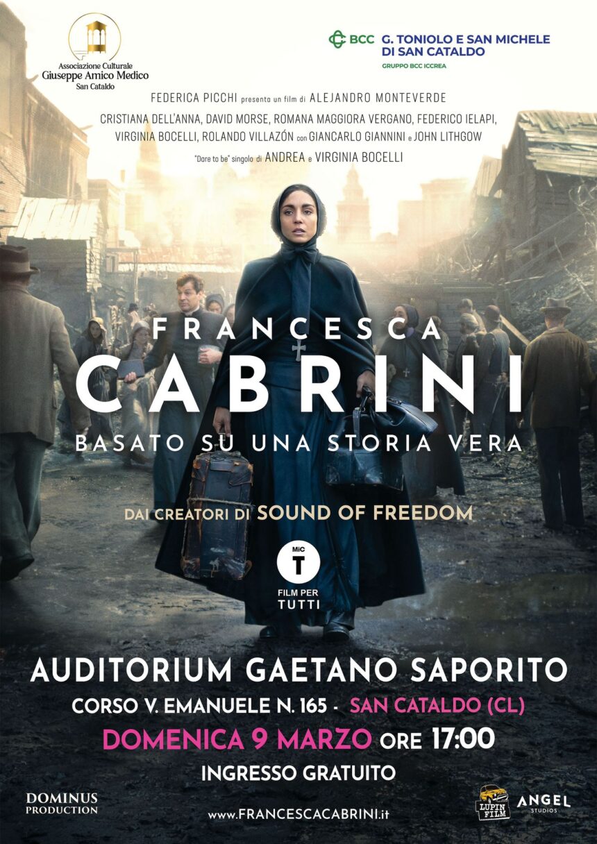 Domenica 9 Marzo 2025 alle ore 17:00, a San Cataldo nell’Auditorium Gaetano Saporito, l’Associazione Giuseppe Amico Medico celebra la forza e il coraggio delle donne con la proiezione di “FRANCESCA CABRINI”, un film di Alejandro Monteverde che dopo l’anteprima mondiale a Roma nell’ottobre scorso, la distribuzione in tutto il mondo e il grande successo negli Stati Uniti, sbarca in Sicilia in prima visione per la provincia di Caltanissetta che segue a quella di Palermo e Catania.