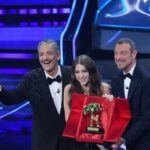 Velluto sparkling per i Negramaro, incluse le tracolle degli strumenti. Sangiorgi&Co. scelgono abiti Giorgio Armani dai tessuti morbidi e forti accenti orientali. Voto: 6. Ma è Tananai o David Byrne? Il cantante, ospite all’Ariston, scende le scale in un soprabito grigio super oversize che richiama, nei volumi, la celebre giacca XXL del frontman dei Talking Heads nel video di ‘Once in a lifetime’. Voto: 5. Street ma con classe Mahmood, finalmente in tuta gold (come il titolo della canzone che porta in gara), pantaloni cargo e ampio anorak nero di pelle. Un look disegnato appositamente per lui da Pierpaolo Piccioli di Valentino. “Mahmood con i pantaloni dorati, Signore perdonami perché ho peccato” scrive una fan su X. E noi sottoscriviamo. Quanto a stile non ci sono dubbi, è il vincitore totale di questa edizione. Voto: 11.
