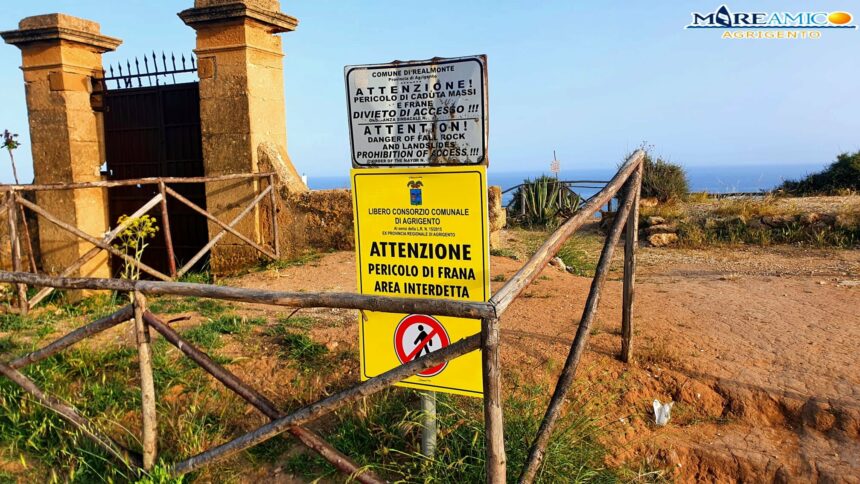 Il vecchio belvedere sopra la Scala dei Turchi è stato inibito alla fruizione pubblica dal Libero consorzio comunale di Agrigento perché non è sicuro. Mareamico nelle scorse settimane ne aveva documentato il pericolo. «Anche il sindaco di Realmonte – ricorda l’associazione ambientalista – si era premurato di additare Mareamico come organo di diffusione di false notizie. Oggi è arrivato il tempo di guardare il territorio dallo stesso punto di vista mettendo sullo sfondo la sua tutela e la sua fruizione in sicurezza».