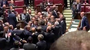 Alla Camera dei deputati scoppia la rissa. Oggetto del contendere è il Mes, Meccanismo europeo di stablità, ovvero il Fondo Salva-Stati. I deputati della Lega e del Pd quasi vengono alle mani durante una fase molto accesa del dibattito. A scatenare le ire del Carroccio è l’intervento di Piero De Luca che accusa il partito di Matteo Salvini di aver contrattato il Mes quando era al governo. Gli animi hanno preso fuoco in pochi minuti e il presidente Roberto Fico è stato costretto a sospendere i lavori dell’aula. Insomma ancora una volta un brutto spettacolo da parte dei deputati di Montecitorio. Nel video pubblicato dalla deputata Pd Patrizia Prestipino le immagini della bagarre. Tra le urla e i fischi che arrivano dai banchi del centrodestra, vicino ai banchi dove siedono gli stenografi, si accalcano diversi deputati: nel tentativo di separarli c’è chi come il deputato di FI Giorgio Mulè esce con un polso slogato. Un deputato leghista sfascia una sedia di uno stenografo.