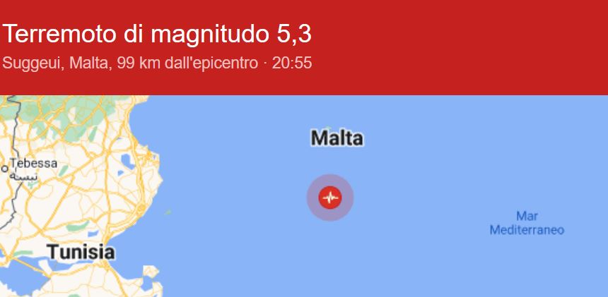 A Malta c'è stato un terremoto di magnitudo 5.6 ad appena 9km di profondità registrato nelle acque a Sud dell’isola alle ore 20:55. Alla scossa principale della serata ne sono seguite altre due di magnitudo 3.8 alle 21:10 e di magnitudo 3.5 alle 21:13. Tanto spavento per i residenti di Malta che sono scesi per strada mentre i vigili del fuoco e gli uomini della Protezione civile hanno effettuato delle verifiche tecniche.