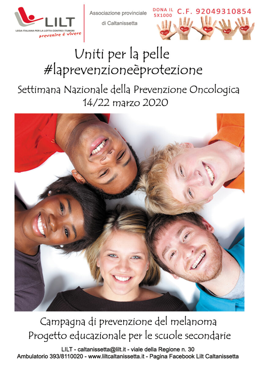 È già avviata la prima fase del progetto educazionale per le scuole secondarie promosso dalla LILT di Caltanissetta in seno alla campagna di prevenzione del melanoma, in occasione della ricorrenza della Settimana Nazionale della Prevenzione Oncologica.
