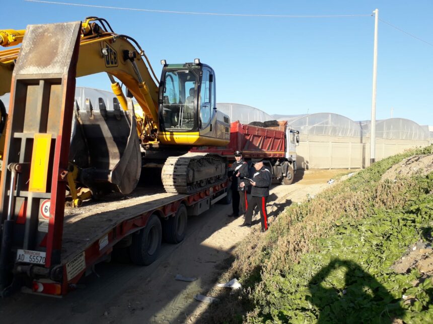 Sono stati sequestrati l’escavatore e gli autocarri utilizzati dai tre.