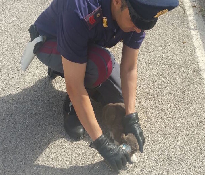 Arriva dall'asfalto della Ss 626, l'ennesima storia di salvataggio di un animale in difficoltà. A scrivere il lieto fine a questa storia sono stati gli agenti della Polizia Stradale di Caltanissetta, durante un servizio di pattugliamento della statale nei pressi di Riesi, in contrada Carrubba. I due componenti dell'equipaggio, infatti, hanno notato un barattolo di latta a cui fuoriusciva il corpo di un gatto di pochi mesi. Un potenziale pericolo tanto per gli automobilisti che schivavano il barattolo, quanto per il micio che aveva infilato la testa alla ricerca di qualcosa da mangiare ma era rimasto incastrato senza potere più uscire. A quel punto, gli agenti della Polstrada hanno soccorso il gatto, tirandolo fuori da quel cilindro con delicatezza e ridandogli la libertà meritata.