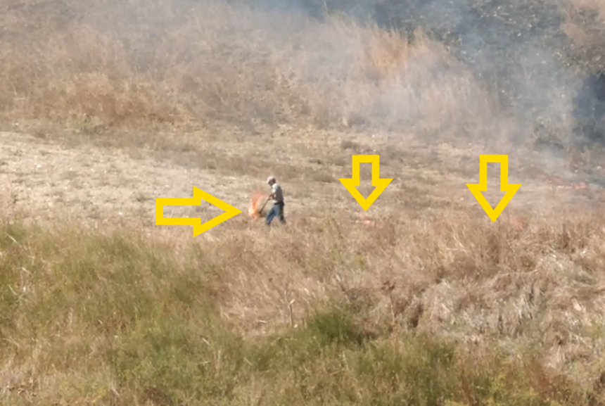 Nei giorni scorsi nelle campagne del Nisseno, tra Sutera e Mussomeli, durante un servizio di vigilanza ambientale ed antibracconaggio le Guardie volontarie del WWF in servizio presso il Nucleo provinciale di Caltanissetta hanno scoperto un uomo che appiccava il fuoco in una zona di macchia nei pressi di un torrente, causando un vasto incendio. Le Guardie WWF sono intervenute immediatamente riuscendo a filmare l’incendiario ed a documentare in dettaglio tutte le fasi dell’azione criminale: nelle immagini si vede chiaramente l’uomo che, con un forcone, preleva della paglia secca, la brucia e la sparge sul terreno. Grazie a questa tecnica e alla presenza del vento, si crea il fenomeno del cosiddetto “spotting” e le fiamme si diffondono sempre di più, aggredendo una vasta area coperta da vincolo paesaggistico, idrogeologico e di rilevante valore ecologico-ambientale.
