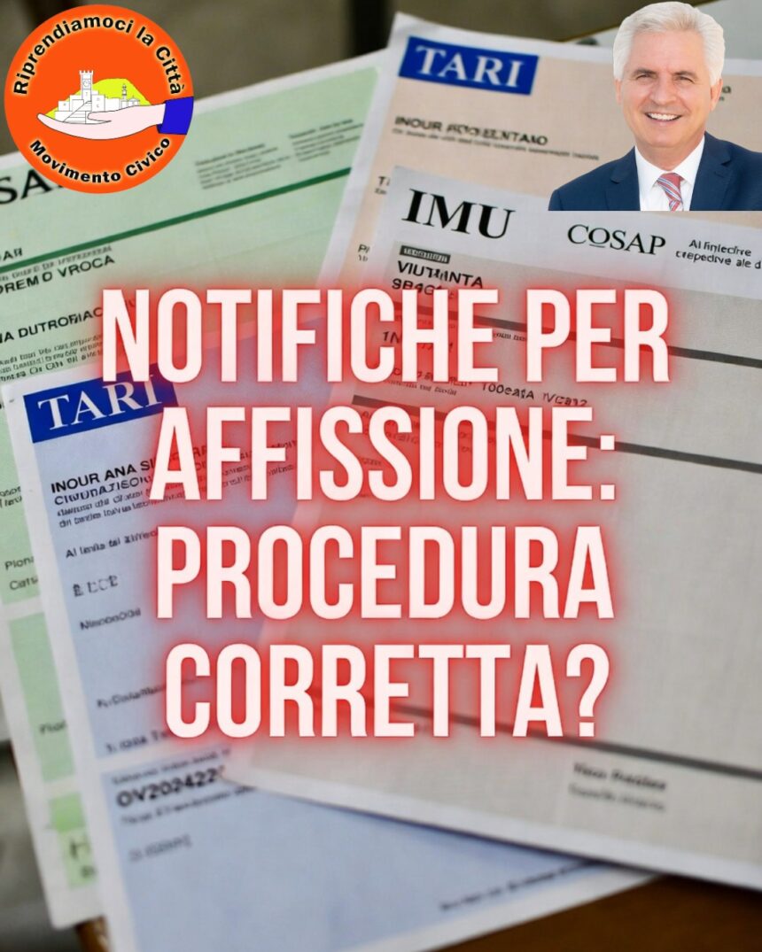 Il gruppo consiliare “Riprendiamoci la Città” ha rilevato che, ad esempio, in data 15 marzo 2024, il concessionario SO.G.E.T. S.p.A. ha trasmesso al Comune almeno nove comunicazioni, contenenti elenchi per un totale di oltre 250 notifiche, per le quali si dichiarava di procedere tramite affissione all'Albo Pretorio, motivando l'azione con la presunta “assenza nel Comune di una loro abitazione o ufficio o azienda“.