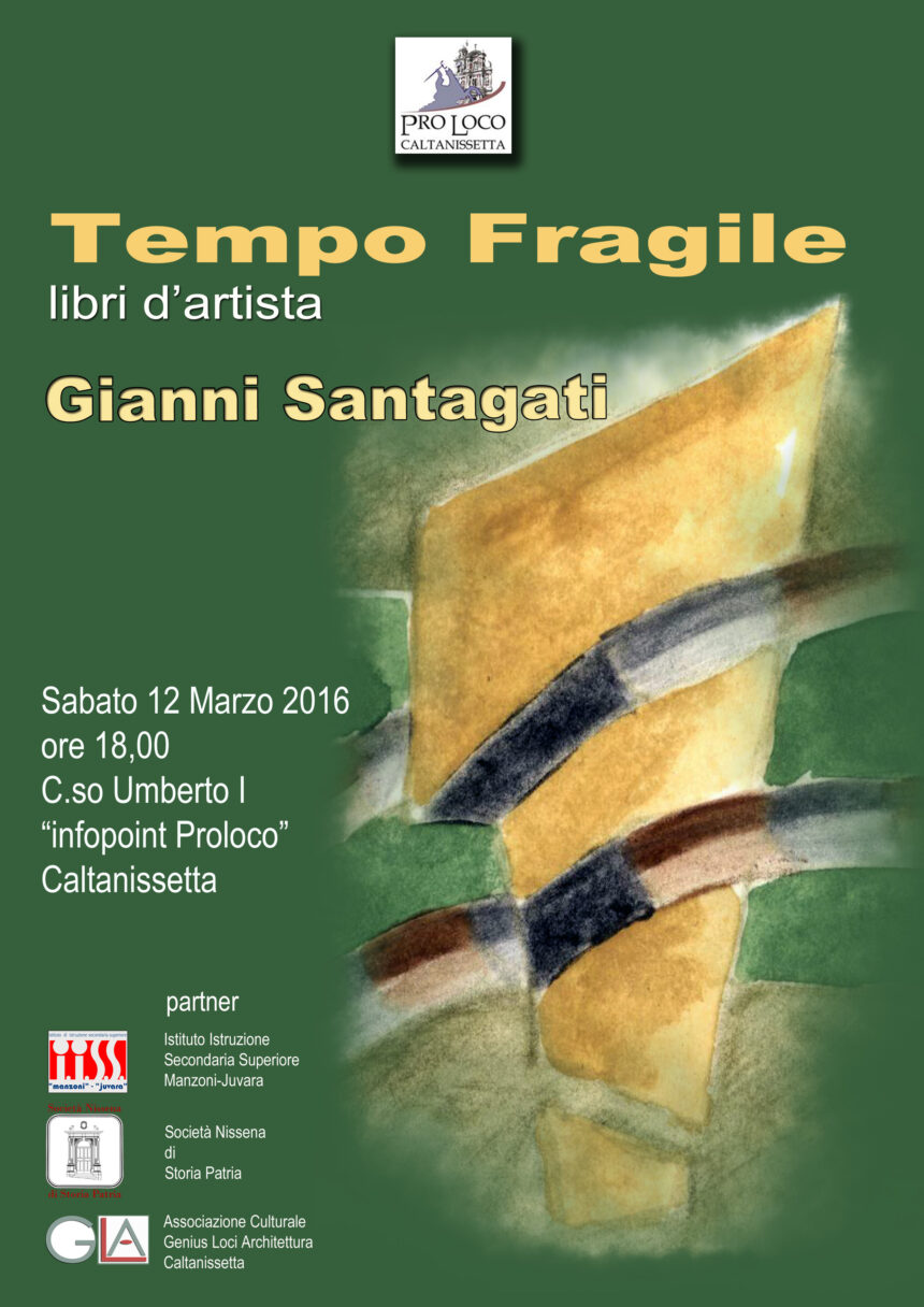 “Tempo Fragile libro d’artista” è un evento che si terrà presso “infopoint Proloco” ex Circolo dei Nobili al piano terra Palazzo Comunale in Corso Umberto I a Caltanissetta, Sabato 12 Marzo 2016 alle ore 18,00.