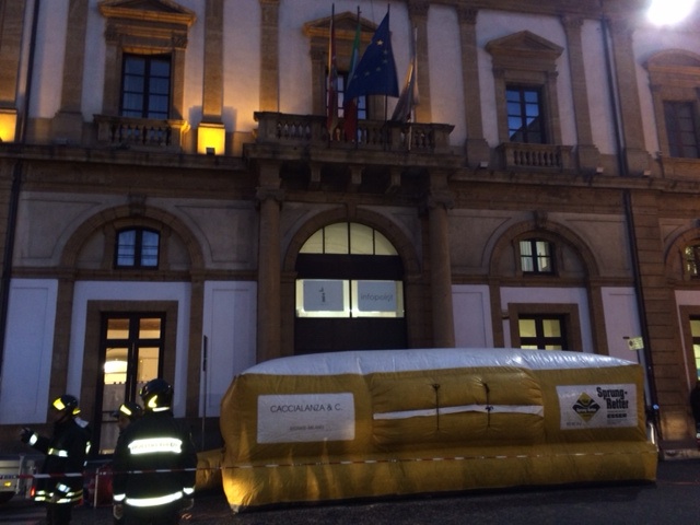 Momenti di tensione oggi pomeriggio al Municipio di Caltanissetta durante la riunione tra l'assessore alle Politiche sociali Giuseppe Firrone e una trentina di lavoratori dell'ex Reddito minimi di inserimento che fino allo scorso 31 dicembre hanno partecipato ai cantieri di servizio. Durante l'incontro, uno degli operai s'è sporto al balcone della sala gialla di Palazzo del Carmine minacciando di buttarsi sotto. Forse un gesto  soltanto dimostrativo, a testimonianza dell'esasperazione degli operai per il mancato finanziamento dei cantieri di servizio da parte del Governo Regionale. I lavoratori avevano chiesto al Comune di Caltanissetta di anticipare le somme per riavviare i cantieri, ma la Giunta regionale ha comunque fatto sapere che non avrebbe concesso nessun finanziamento se gli enti locali avessero anticipato le somme. Temendo gesti estremi, sono stati mobilitati i vigili del fuoco che tempestivamente hanno piazzato un cuscino da salto pneumatico sotto al balcone di Palazzo del Carmine che si affaccia su piazza Garibaldi. Una presenza ingombrante che ha costretto i vigili urbani a chiudere il breve tratto di corso Vittorio Emanuele e deviare la circolazione verso la Badia. L'allerta è rientrata dopo mezz'ora e la riunione tra l'assessore Firrone e i lavoratori è ancora in corso, presidiata dalla Polizia Municipale che sta garantendo l'ordine pubblico. FOTO DI SEGUONEWS.IT