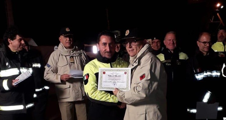 Anche il vigile del fuoco nisseno Michelangelo Saporito ha fatto parte del contingente italiano inviato in Albania dopo il drammatico terremoto che ha provocato 40 morti e circa 600 feriti. Da qualche mese il funzionario era stato inviato al Centro Operativo Nazionale della Direzione Centrale per l'Emergenza del Viminale. Una volta arrivata la richiesta di partecipazione alla missione internazionale lui, insieme ad altri 150 vigili del fuoco, è stato inviato in Albania per aiutare la popolazione. "Sono arrivato a Durazzo tra i primi – racconta Michelangelo Saporito – tre ore dopo il terremoto. Dopo una prima valutazione sugli immobili colpiti siamo stati impegnati in un sito dove erano rimaste sotto le macerie sei persone: due gemelline di 2 anni, e una sorellina di 7, insieme alla loro mamma, un uomo e una ragazza. Per ore abbiamo fatto le ricerche insieme alle unità cinofile dei vigili del fuoco e del soccorso alpino della Guardia di Finanza. Purtroppo erano tutti e sei morti sotto le macerie. L'immobile era imploso, determinando il crollo di un solaio sopra l'altro. E' chiaro che la speranza di trovare qualcuno vivo c'è sempre e abbiamo lottato fino alla fine ma il sisma è stato talmente violento e le strutture degli edifici erano così vulnerabili che chi è rimasto dentro non è riuscito a sopravvivere. L'implosione dell'edificio non aveva consentito la presenza di bolle d'aria. Accanto a questo ricordo drammatico conservo quello del popolo albanese che era entusiasta dell'arrivo di noi italiani, vuoi per un legame storico, vuoi per l'esperienza italiana in questo tipo di emergenze che altre nazioni non hanno. In Italia i terremoti sono più frequenti che in altre nazioni che facevano parte del contingente nazionale e la fiducia che nutrivano nei nostri confronti era palpabile. Tengo a sottolineare anche il valido supporto fornito dal comando di polizia di frontiera della Guardia di Finanza presente a Durazzo per effett di un accordo bilaterale tra Italia e Albania". A chiusura delle attività il Governo albanese ha manifestato la sua riconoscenza con un attestato di benemerenza consegnato dal Capo di Stato Maggiore della Difesa (nella foto con Saporito n.d.r.) recatosi personalmente al campo base dei vigili del fuoco.