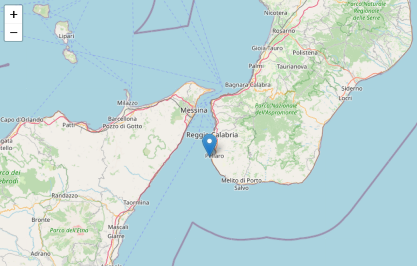 Terremoto di magnitudo 3.4 nello Stretto di Messina