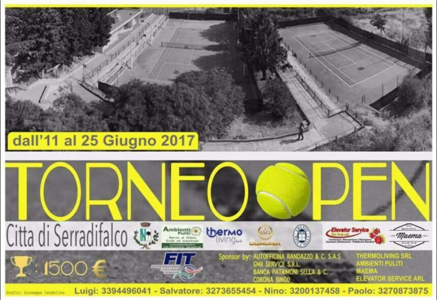 Si svolgerà dall'11 al 25 giugno la III edizione del Torneo Open Città di Serradifalco rivolto a tutti i tennisti iscritti alla Federazione Italiana Tennis. Organizzato da Paolo Fasciana e Nino Burgarello si svolgerà nei campetti della Asd Falchetti presieduta da Giuseppe Guttilla. Anche quest'anno si prevede un grande successo per una manifestazione che in passato ha coinvolto centinaia di atleti e un pubblico numerosissimo. Si tratta di un torneo regionale che mette in pallio un premio da 1500 euro suddiviso tra i primi classificati. Nelle due passate edizioni a salire sul gradino più alto del podio sono stati Nicolò Schilirò e Alessio Di Mauro, ex professionista, nel passato numero 68 al mondo. Tanti gli sponsor che come ogni anno sostengono l'iniziativa tra cui il Corona.