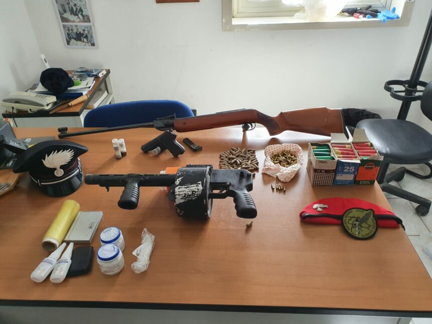 Gli stessi, controllati dai militari direttamente presso la propria abitazione, venivano trovati in possesso di un vero e proprio arsenale di armi tra cui un fucile semiautomatico, una carabina, una pistola scacciacani modificata e persino una balestra, oltre che a centinaia di munizioni di vario calibro. Le stesse erano tutte occultate presso un magazzino adiacente all’abitazione e presso un ovile riconducibile ai due. Estendendo la perquisizione al resto dell’immobile i militari, attirati dalla presenza di una credenza che custodiva numerosi contenitori per alimenti intrisi di polvere bianca, trovavano all’interno della stessa anche 11 grammi circa di cocaina, oltre che due bilancini di precisione e diverso materiale atto al confezionamento dello stupefacente. Tutto il materiale veniva sequestrato ed avviato ai laboratori specializzati per le analisi.