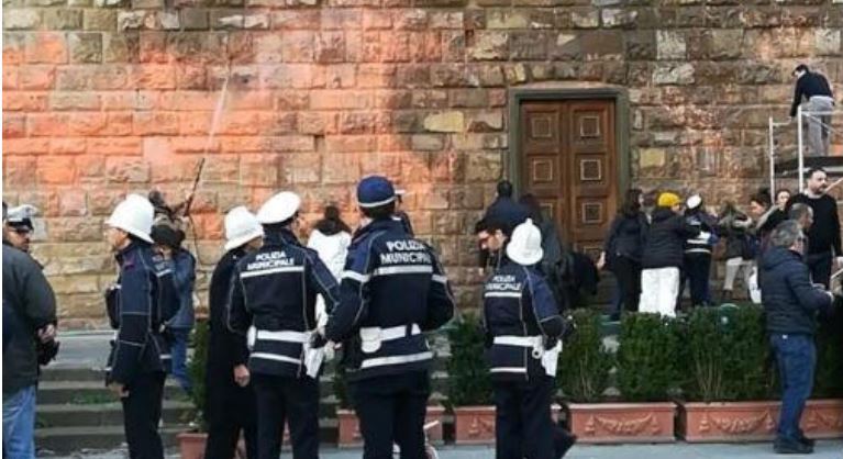Nuova protesta del gruppo ambientalista "Ultima generazione", stavolta a Firenze. Due attivisti hanno imbrattato di vernice arancione la facciata di Palazzo Vecchio e sono stati interrotti dal sindaco Dario Nardella che proprio in quel momento stava effettuando un sopralluogo sull'Arengario. I turisti che si trovavano in piazza hanno cominciato a fischiare gli ambientalisti. Il blitz è stato rivendicato dal gruppo "Ultima generazione" sui propri canali social. In una foto condivisa su Instagram, si vede uno degli attivisti bloccato dalla polizia municipale che rivendica la battaglia contro "il collasso climatico".