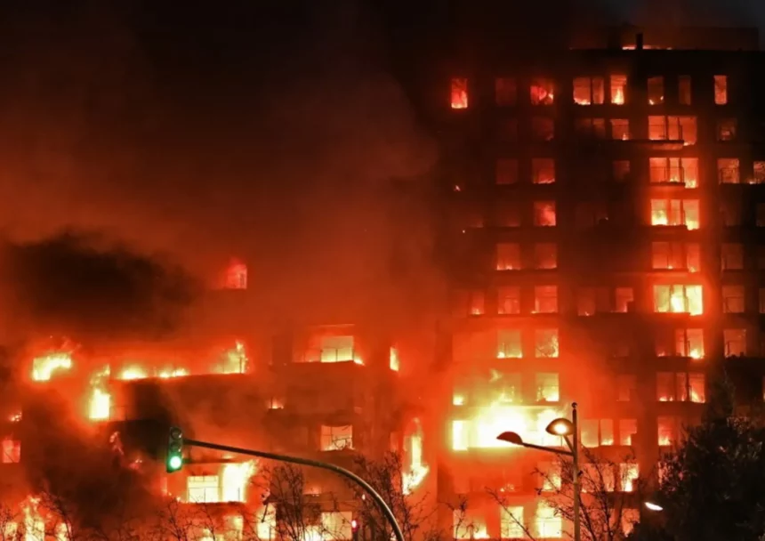 (Adnkronos) – Un incendio di grandi proporzioni sta devastando un edificio di 14 piani a Valencia, in Spagna. Le squadre di soccorso stanno lavorando per mettere in salvo le persone intrappolate, due delle quali, riporta il sito di El Mundo, sono rifugiate su un balcone. Lo stesso sito riporta che una persona è saltata dal primo piano sopra un telo steso dai vigili del fuoco. Secondo il giornale locale Levante, le persone rifugiate sul balcone al sesto piano sono un padre con la figlia adolescente.
