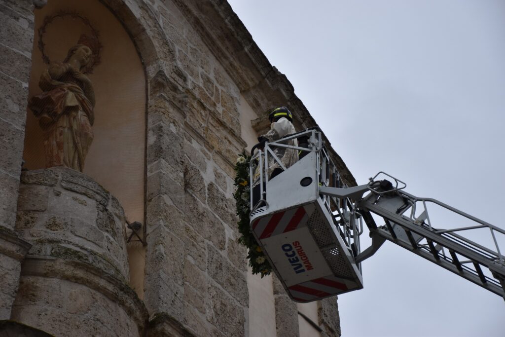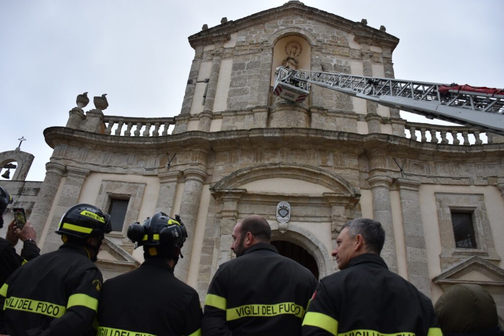 Per il 15° anno consecutivo, i Vigili del Fuoco di Caltanissetta, hanno partecipato a quello che è ormai un appuntamento atteso dai sancataldesi, ovvero l’Atto di venerazione alla statua dell’Immacolata posta sulla facciata della Chiesa Madre. Prima della cerimonia all’aperto, alle ore 11:00 l’Arciprete padre Alessandro Giambra ha presieduto una solenne Concelebrazione Eucaristica alla presenza di tutte le Autorità Civili e Militari che operano nel territorio sancataldese, di numerosi uomini in divisa dei Vigili del Fuoco e del picchetto d’onore dei Carabinieri, della Polizia Penitenziaria e dei Vigili del Fuoco. Numerosi i fedeli che hanno gremito la Chiesa Madre. Al termine della Celebrazione Eucaristica, che quest’anno ha avuto un particolare significato a motivo del ricordo del 170° anniversario della proclamazione del dogma dell’Immacolata da parte del Pontefice Pio IX e del 5° anniversario dell’Affiliazione della Chiesa Madre alla papale Arcibasilica di San Giovanni in Laterano, dove vi è la Cattedra del Papa, in Piazza Madrice, l’autoscala dei Vigili del Fuoco ha portato in alto l’Arciprete con una grande corona di fiori che è stata deposta ai piedi dell’Immacolata.