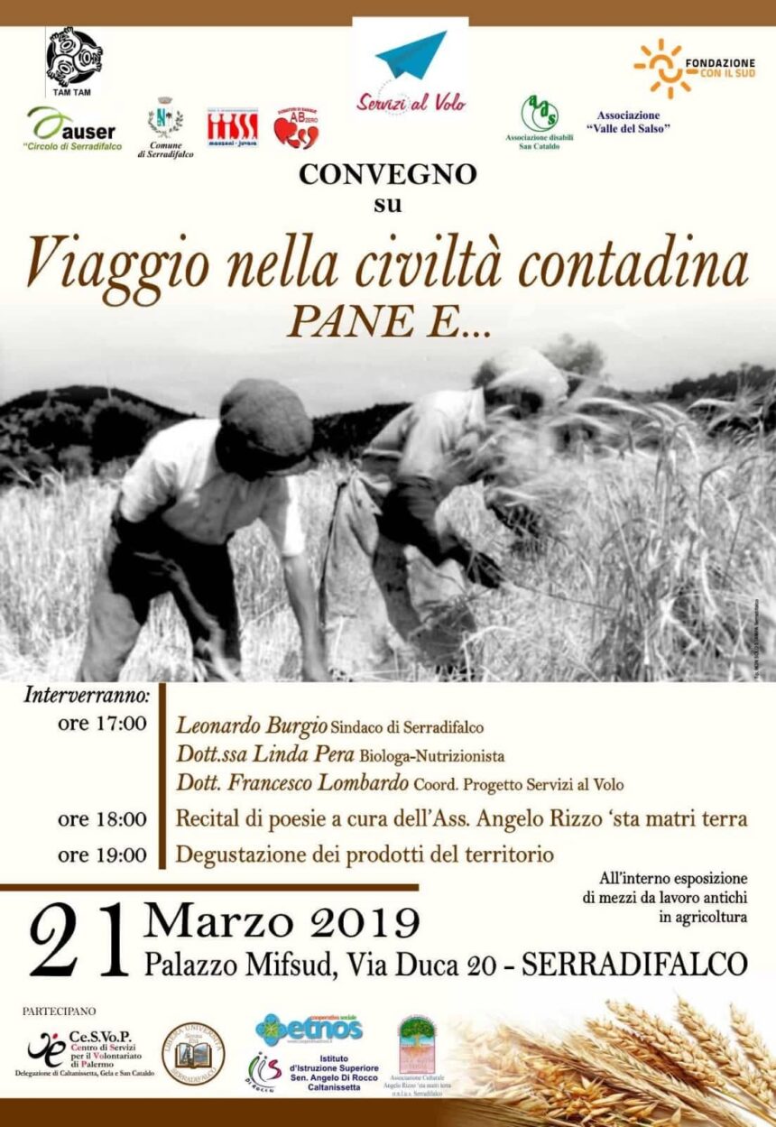 "Viaggio nella civiltà contadina, pane e…" è questo il titolo del convegno che si terrà giovedì 21 Marzo, presso Palazzo Mifsud, in via Duca 20 a Serradifalco (CL).