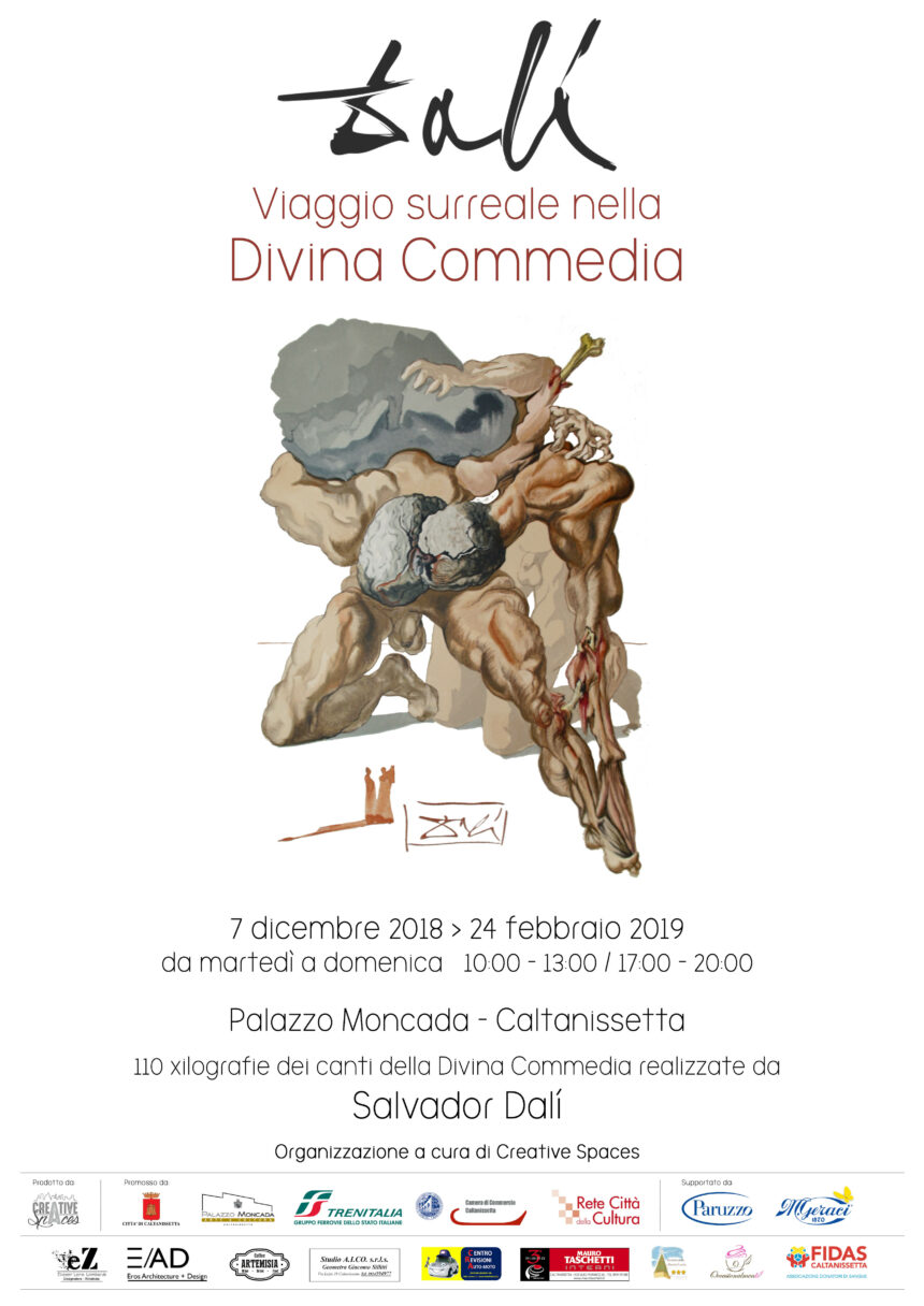 La mostra, allestita presso la Galleria Civica d'Arte di Palazzo Moncada di Caltanissetta, accoglierà 110 xilografie originali dell'artista Salvador Dalì, a trent'anni dalla sua morte Caltanissetta accoglie un artista conosciuto in tutto il mondo e nello specifico la più grande opere da lui realizzata. La mostra avrà un percorso sensoriale che accompagnerà il visitatore nel suo viaggio tra i mondi danteschi (Inferno, Purgatorio e Paradiso).