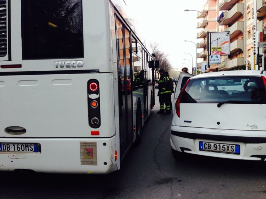 Incidente stradale senza feriti questa mattina in viale della Regione, davanti la caserma dei vigili del fuoco. Un autobus della Scat ha urtato, piegandolo, lo sportello di una Fiat Punto che in quel momento il conducente stava aprendo per scendere. Nessuna conseguenza, eccetto soltanto tanto spavento, per l'automobilista che s'è trovato a stretto contatto col pullman della linea urbana.